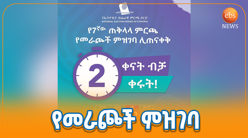 የኢትዮጵያ ብሔራዊ ምርጫ ቦርድ የ7ኛው ጠቅላላ ምርጫ የመራጮች ምዝገባ ሊጠናቀቅ ሁለት ቀናት ብቻ እንደቀሩት አስታወቀ።